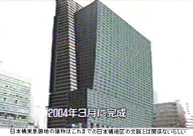補足:テレビを見ていたらこの日本橋東急跡地開発の絵が出てきた。以前とはなんの関係もない姿の建物らしい。(2001.4.8)