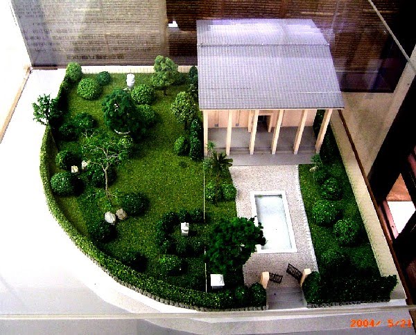 山口文象のデザインした元の建物の形は模型として、今の館内にガラスのケースに入って展示してある。 だが見ると、屋根にあったはずのトップライトがないのは、多分、雨漏りや結露で取り払われたいたのを、そのまま模型にしたのであろう。つまり当初建築時の復元模型ではなく取り壊し時の形態である。(20090217記)