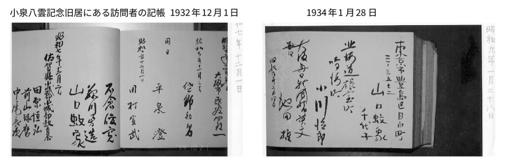 ●小泉八雲記念旧居訪問者の記帳にある山口文象の署名(1932,1934)