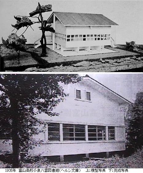 これは計画だけで建設されなかったものと思われていたのだったが、実は、旧制富山高校の図書館に付属する「小泉八雲図書館」(へルン文庫)として、1935年に完成していたことが、最近になって確認されたのである。