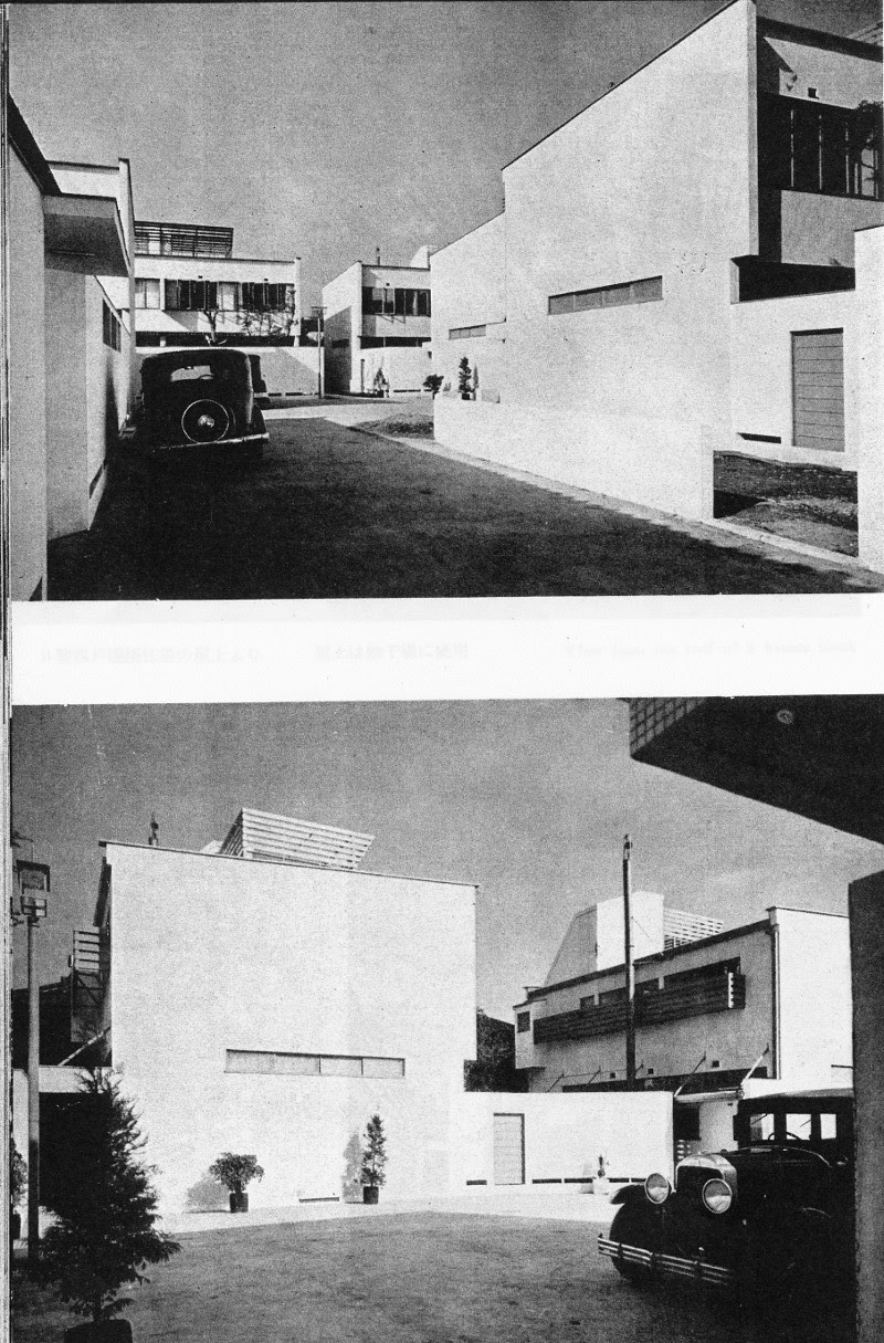 工事は既に七分以上進んでいる。生馬氏も時折絵筆を捨てて建築の現場に現れて特異の色彩に独特の凝りを見せている。敷地は七百坪十三戸はそれぞれ独立家屋で浴室・食堂・臺所が附属して硝子を多く使ひテラスや芝生はぜいたくにとってある。八月にこの白亜豪壮のジードルングが完成すれば日本には珍しい集団住居の試みと鋭角的な山口氏の建築様式は各方面注目の的となるであらう。
