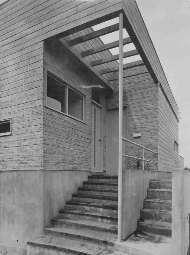 小林邸の簡潔な外部デザインもまた,同様に戦後の窮乏時代の規範となりうるものだった.ほとんど庇を出さない経済性,どうやら入手可能だった杉の下見板,そういった限定された手法を用いながら,きわめて造型的に新しい効果を生み出しているということは,白い漆喰塗りのインターナショナル・スタイルよりもかえって身近な目標となりえたのである.