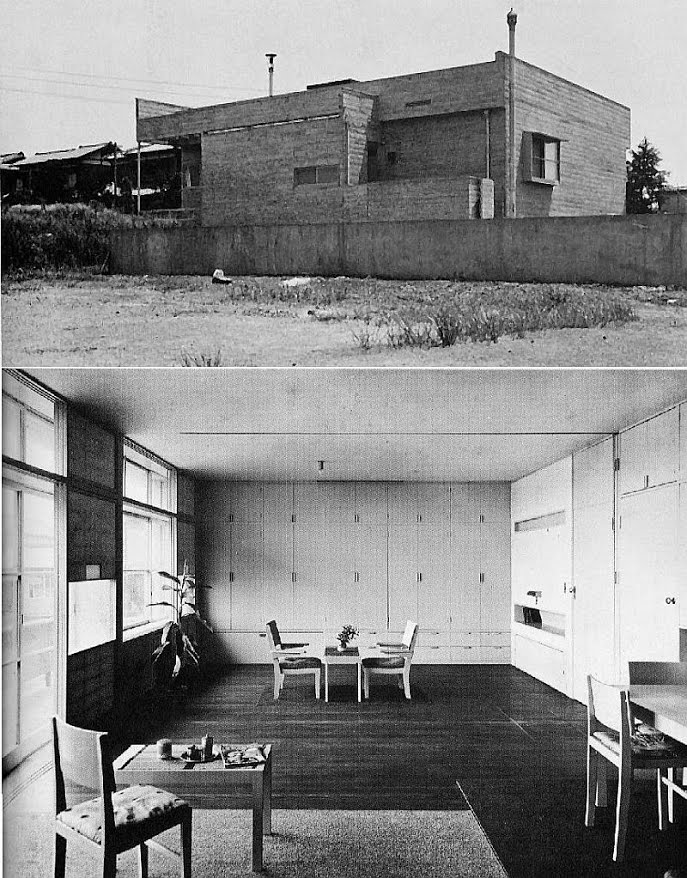 この小林邸にみえる兵と外壁が一体となった立面、南北に重なる間取りとそれに対する通風、フレキシブルなプラニングなどは明らかに都市の集合住宅のプロトタイプをめざしており、ジードルング計画の延長上にある。