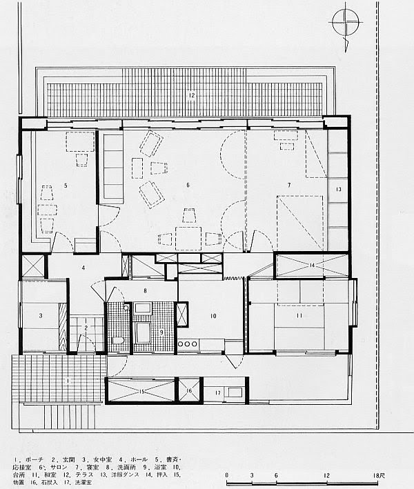 小林邸の住宅のプランは一見すると,もっとも伝統的なものから遠いもののように思われるが,しかし意外なことに,日本的室内空間の構成の手法によって支えられている.しかも,それが和洋の折衷的な方法によってではなく,換骨奪胎した新しい手法を発見することによって成立したのである.