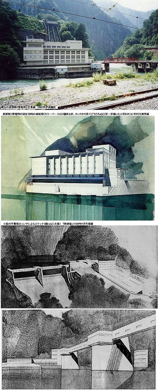 今は関西電力に変わったが、発電所もダムも当時のままに黒部川の山峡に生きてその機能を果たしている。山口文象の作品のうちで「国際建築様式」のデザインでそのまま残っている唯一のものである。
