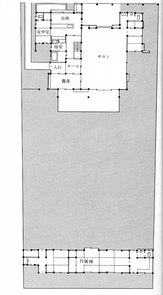 ●1940年代の平面(南の付属棟には山口文象建築事務所の書生たちがすんでいた)