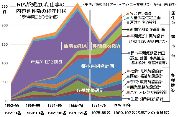 RIA内部にも外部にも都市プランナーや再開発コーディネーターなる職能の確立が見えてきた1970年代から明確に「再開発のアールアイエー」時代である。