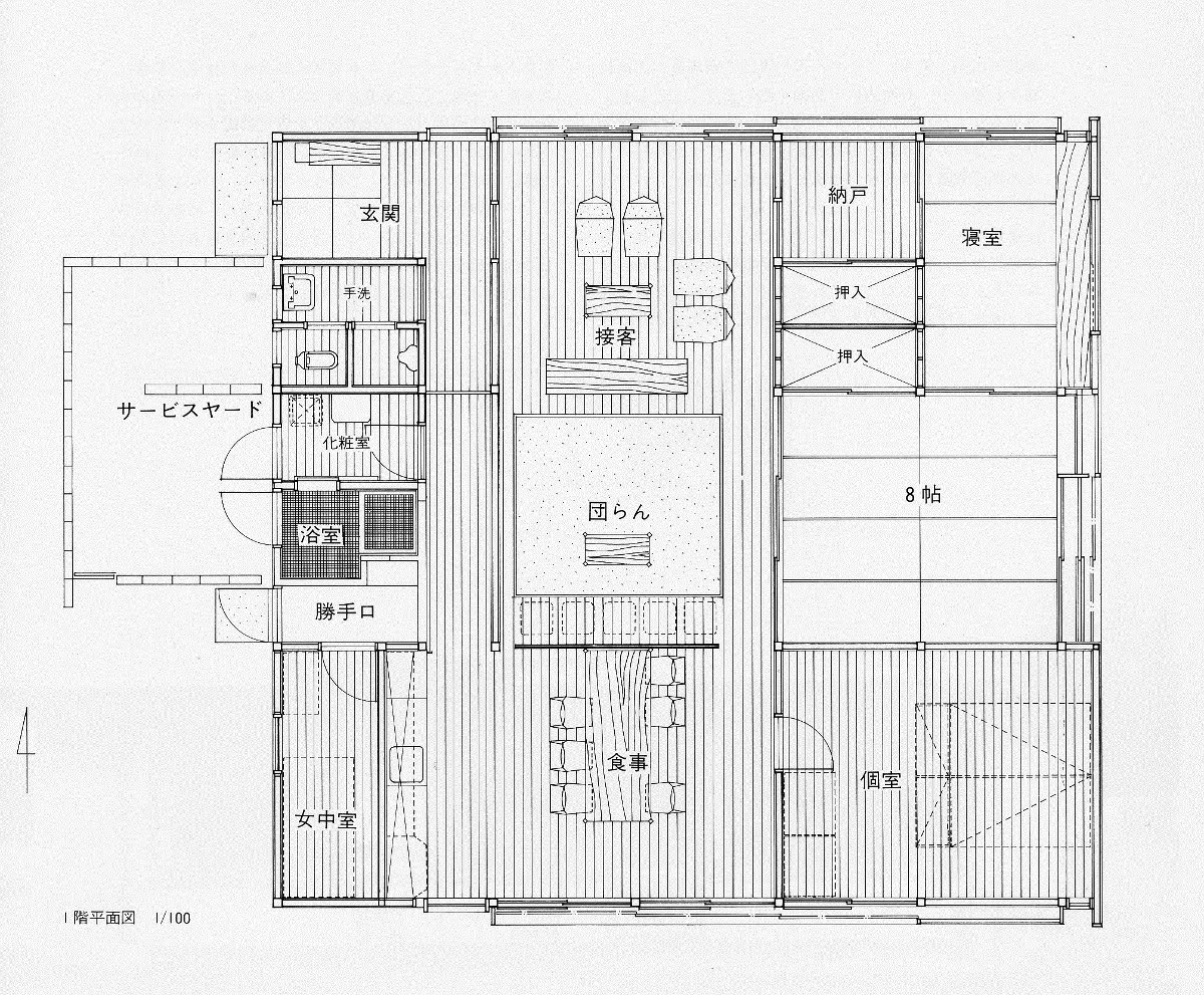 そこで,生活分析から計画をすすめていく,前にも述べた,中村邸・加村邸・山名邸・川合邸という別の系列が思いうかぶのである。これらの一群は,生活編成の啓蒙的性格をもちながら,内部空間のつくり方に,比較的しなやかな,自由な性格づけをすることができた。