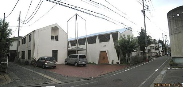 敷地の狭さと収容人数の多さから、折版の山の深さが止む無く浅くなったため、シャープな感覚がうすれたのは残念であったが、この構造の持つモニュメンタルな性格はかなり活かされている。しかも教会のシビアーな建設費の要求に応えている。