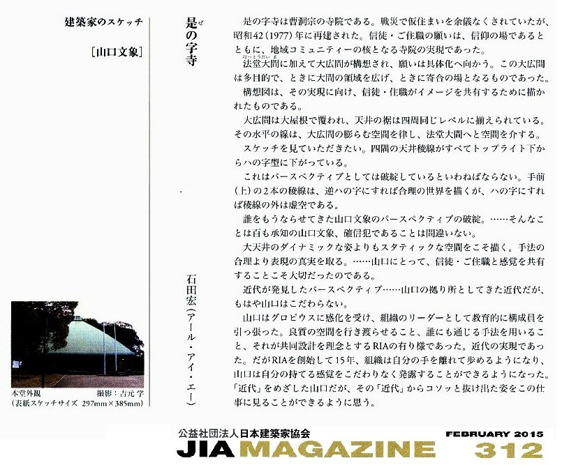 (伊達注:山口文象の晩年の作品には、このような大屋根でまとめるデザインが多くなる傾向がある)