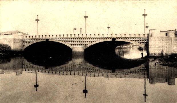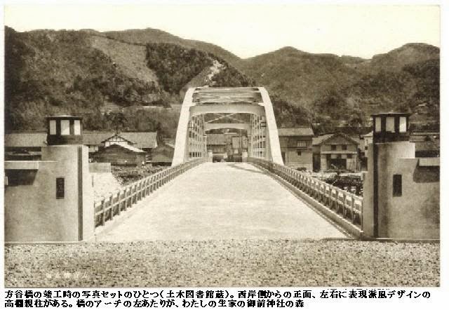 | 竣工時の方谷橋。現在はこの親柱は失われている |